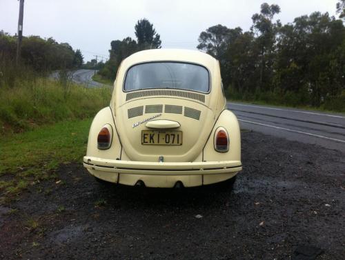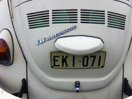 This is a rare semi-automatic 1972 VW beetle. There aren't too many of these around any more. This one is an old Grandma-spec, still with it's original plates from new.