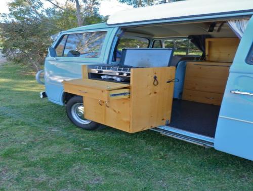 • Lido dual burner gas stove/grill & Waeco Coolmatic 12V camper fridge