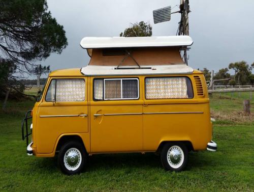 We are regretfully selling our beloved 'Tangarine' , who will be dearly missed. She is a 1974 pop-top campervan who is fully kitted out with a fridge, micorwave and original rock 'n' roll bed. In the 6 years we've had 'Tangie' we have enjoyed many weekend getaways down south , music festival campouts, coffee trips into town and summer drives to the beach- all thanks to the kombi.
