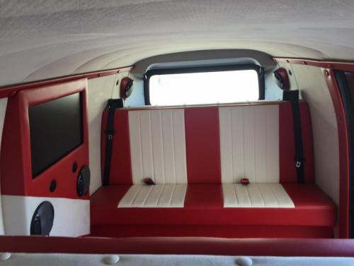 The interior has been re-done in white/red to match the original colouring of the car. This can only increase the value as it reflects the origins of the car, but with a modern update.