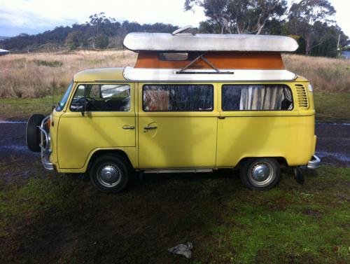 SOLD!!: For sale is this classic VW Kombi camper named Venus. It's a 76 model with a 2 litre fuel injected engine. Venus is a genuine three owner vehicle with paperwork showing history dating back to the first owner. It comes with the original number plates, so has never been off the road. She comes with the original engine, and still drives very well. She had some rust repairs done about 6 years ago in the steps and under the windscreen that have held very well, though as you can expect for such an old original kombi there are other areas that will need attention. She comes with the full original camper interior which includes a fridge, stove, sink, cupboards and rock-n-roll bed. She comes with registration till April 2012 so you can get in a drive it to your hearts content, maybe even take it on a trip around Australia. Call Jared and come and have a look. Phone 0413-262-932.