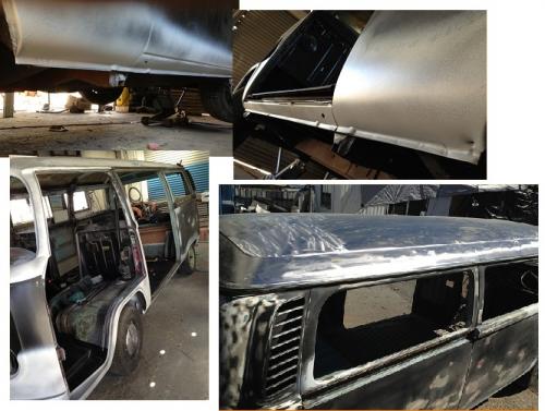 We have been working hard on the Betty Blue project since March 2012. Originally an all black Kombi with a basic bed in the back, we discovered that her original colour was Flipper Blue, and hence proceeded to spray her in this original colour with a cream upper to keep the sun at bay on those nice days at the beach.