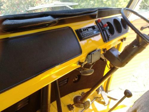 The original stereo looks superb set back into the gloss yellow dash - also fitted with an undertray for extra storage and carpet dash protector.