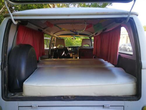 Back seat is a rock n roll bed... really comfortable for camping and conveniently folds up into a 3 seater bench seat with storage space underneath.