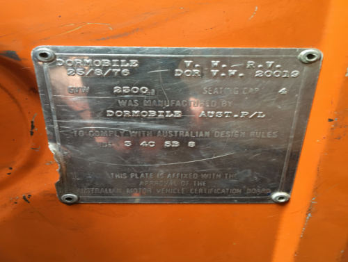 Grant 1976 Volkswagen Dormobile Transporter.