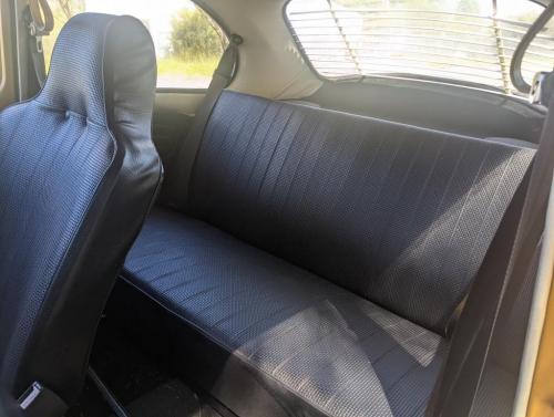 It's just benefitted from a full new interior including new seat upholstery front and back, new door cards, carpets, hoodlining and door and window handles. We've also just replaced the running boards and given the brakes an overhaul. As for the motor we have just given it a freshen up with a new 34 pict carburettor, new distributor with new points, condensor, rotor arm and cap plus new leads and plugs. We've also completed with oil change and gauze clean, set the valve clearances and replaced the rocker cover gaskets and set the dwell and timing. She runs great and drives nicely on the road.